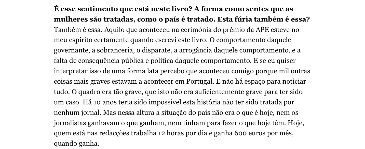Fala em imposição de quotas para mulheres nas administrações de empresas e em meritocracia. Fala sobre acções que marcaram o Dia da Mulher deste ano. Fala da campanha “Quem te ama não te agride” e fala da música “Cansada“, onde a APAV juntou grandes vozes femininas. Fala inevitavelmente de violência mas fala sobretudo de igualdade.
