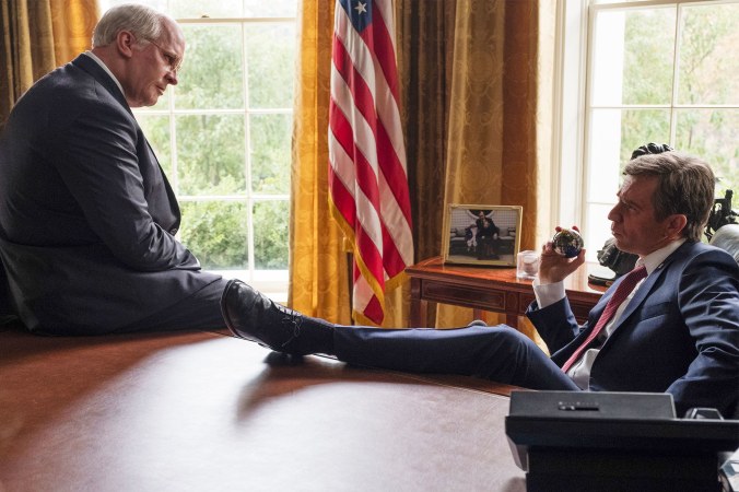 Sam Rockwell equilibra uma perna de frango nas mãos quando, no seu rancho, diz a Christian Bale que o quer como seu número 2 na corrida à Casa Branca. São George W. Bush e Dick Cheney as personagens ali sentadas. O que assusta no novo filme de Adam McKay é que as interpretações dos actores são quase caricaturas. Quase, não porque lhes falte algo – eles são o mais trunfo de Vice. Quase, porque as pessoas ali retratadas são assim na realidade.