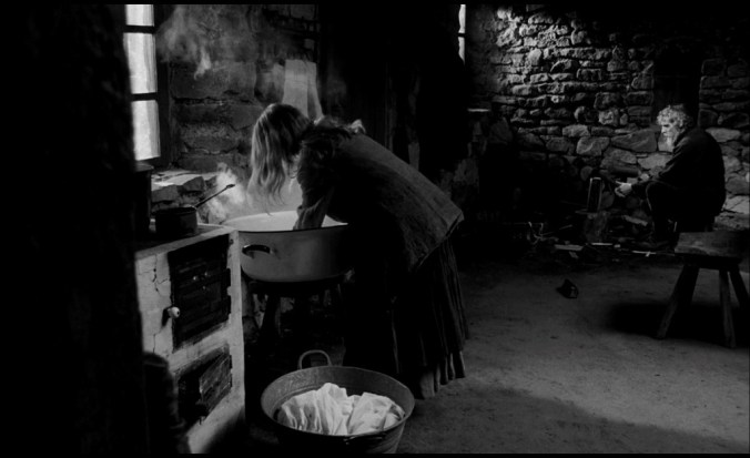 Para isso, terão contribuído certamente dois elementos de que importa falar. Enquanto o vento nos uiva nos ouvidos, há uma música dramática que dá intensidade ao filme, além de nos ocupar aquela parte da atenção que busca ansiosamente o diálogo. A música é do compositor húngaro Mihály Víg, que já trabalhara com Tarr em Sátántangó e também em Werckmeister Harmóniák (2000). A realização também merece algumas palavras, já que insiste na repetição das cenas mas vai mudando o ângulo de abordagem às mesmas e, a dada altura, o espectador parece saltar entre o ponto de vista de cada personagem, na penumbra daquela casa fria. Uma das cenas é mesmo filmada do lado de fora da casa, um espaço que conhecemos só quando a filha vai buscar água ao poço ou quando tenta convencer o cavalo a ser útil.